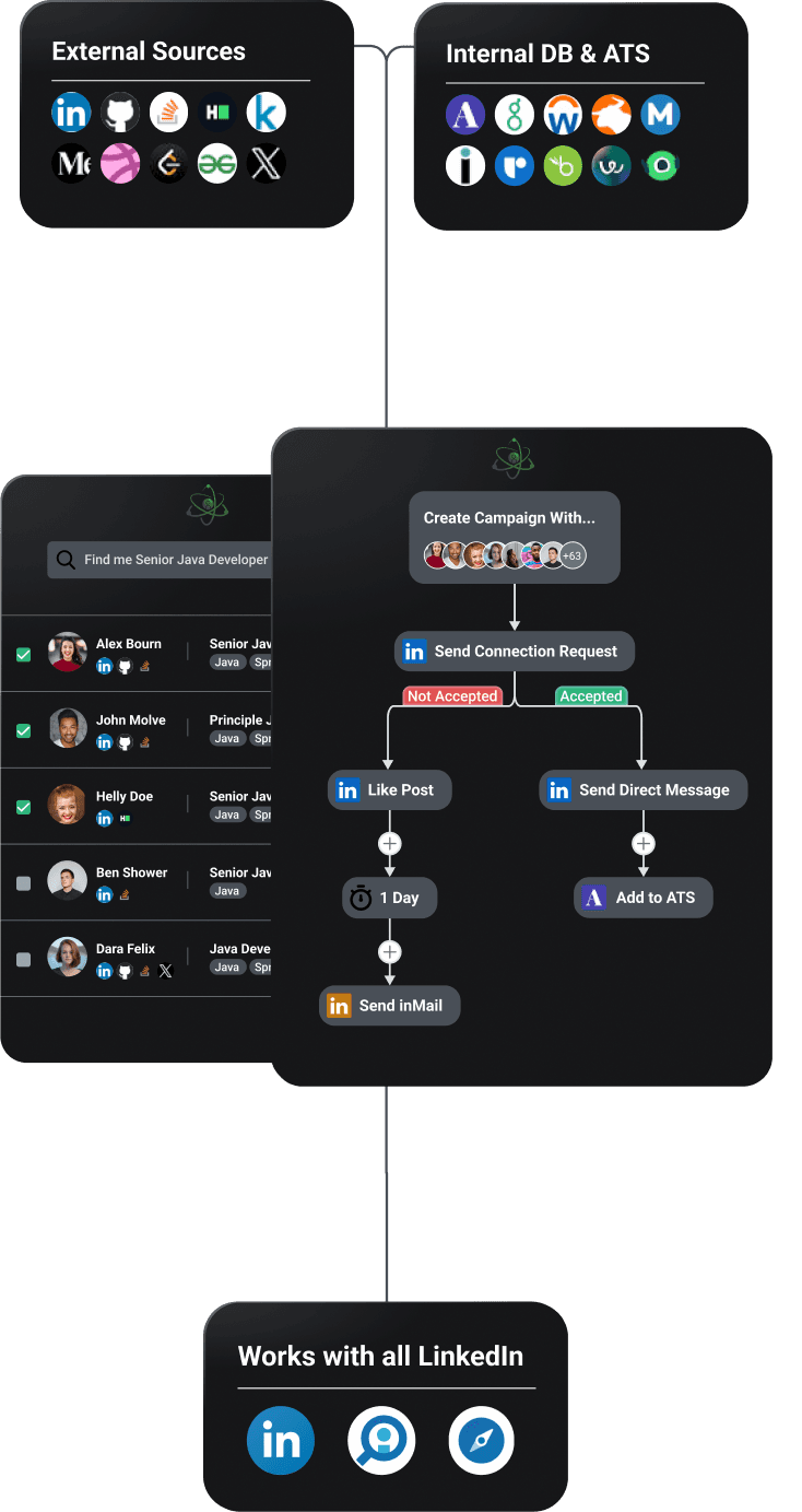 The safest LinkedIn automation tool, built for internal recruitment teams that want to hire top talent faster while having full control & visibility.