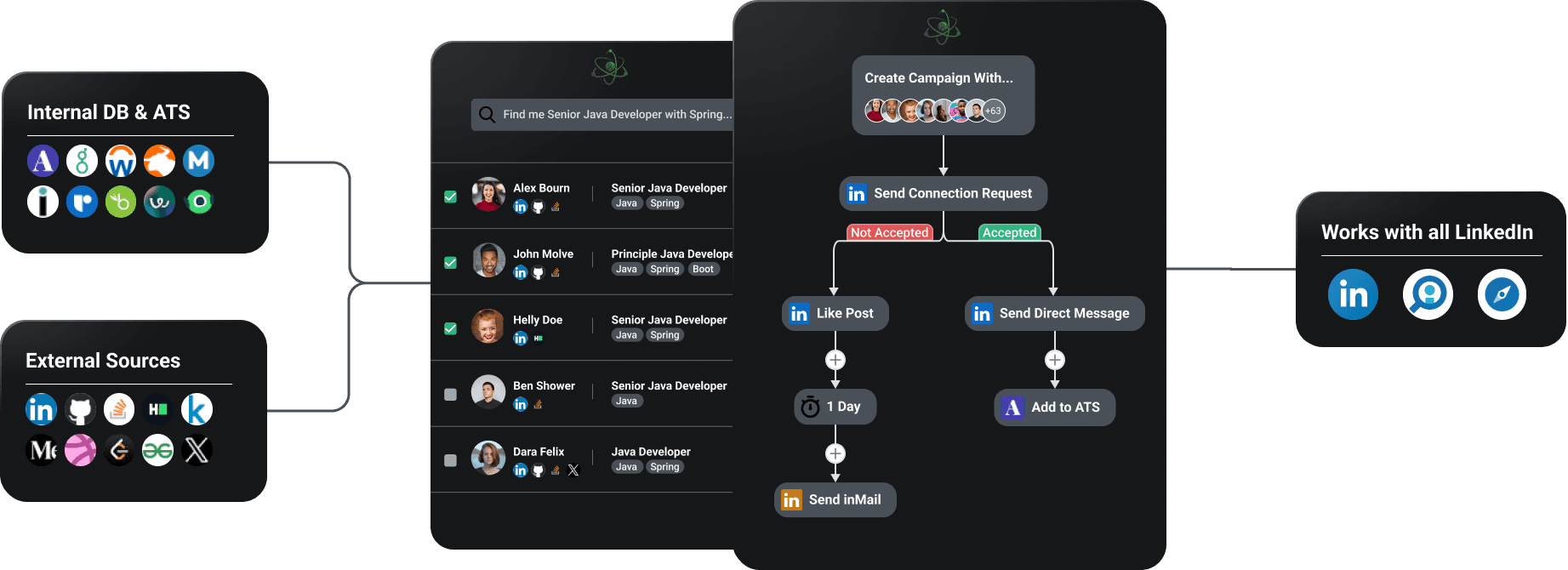 Every recruiter has their own workflow. That's why TalentSight integrates with any ATS, external source and all types of LinkedIn accounts.